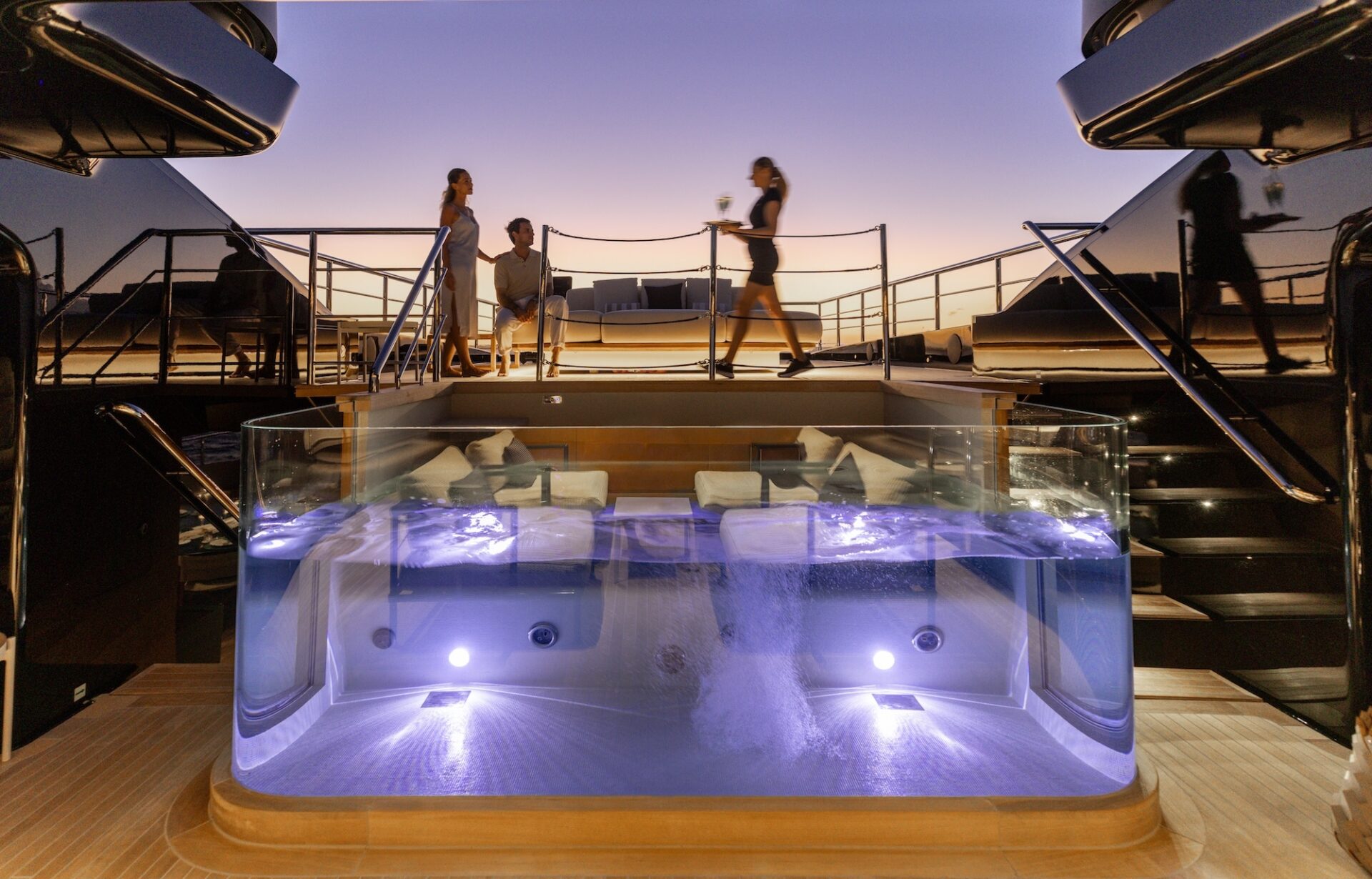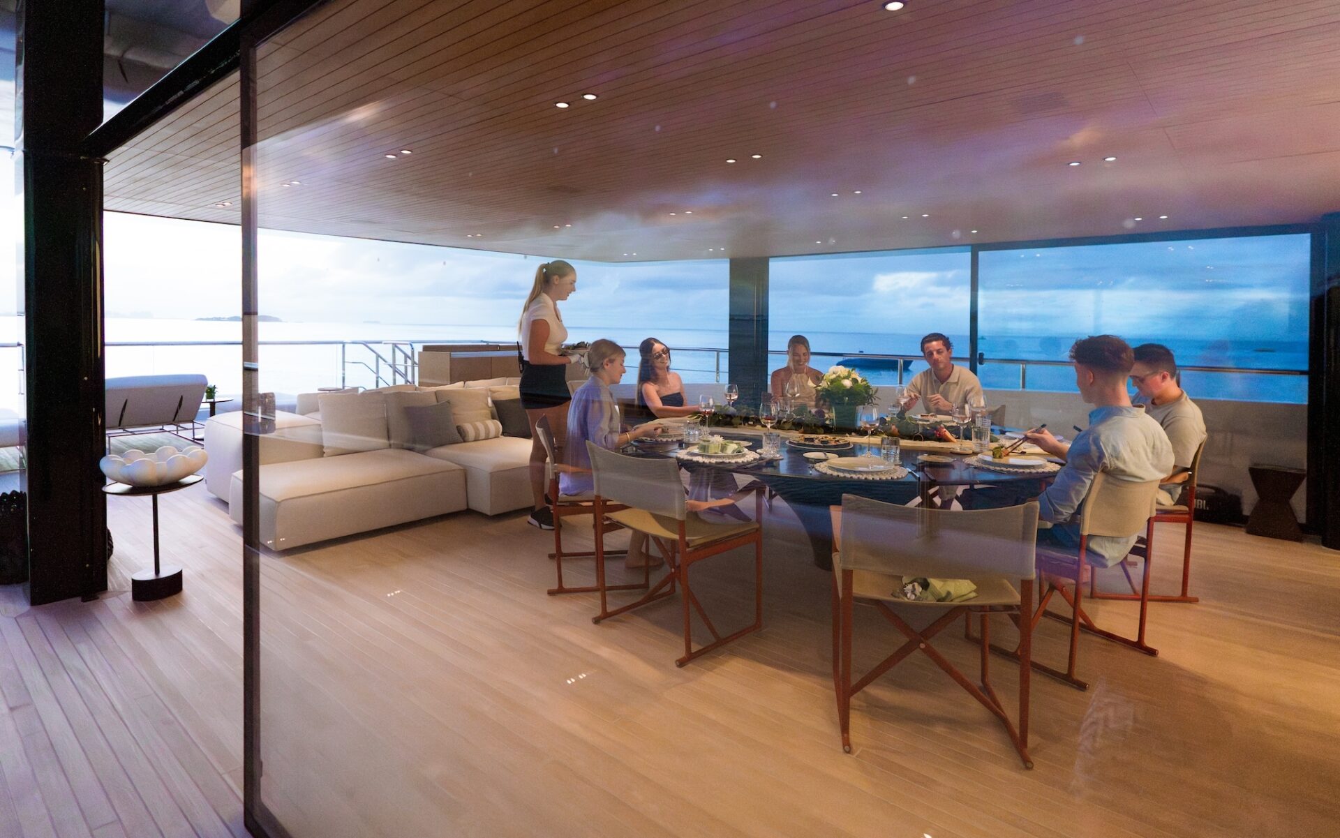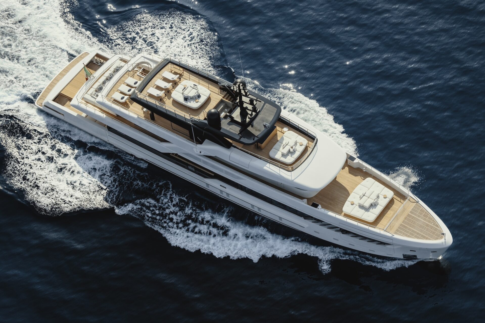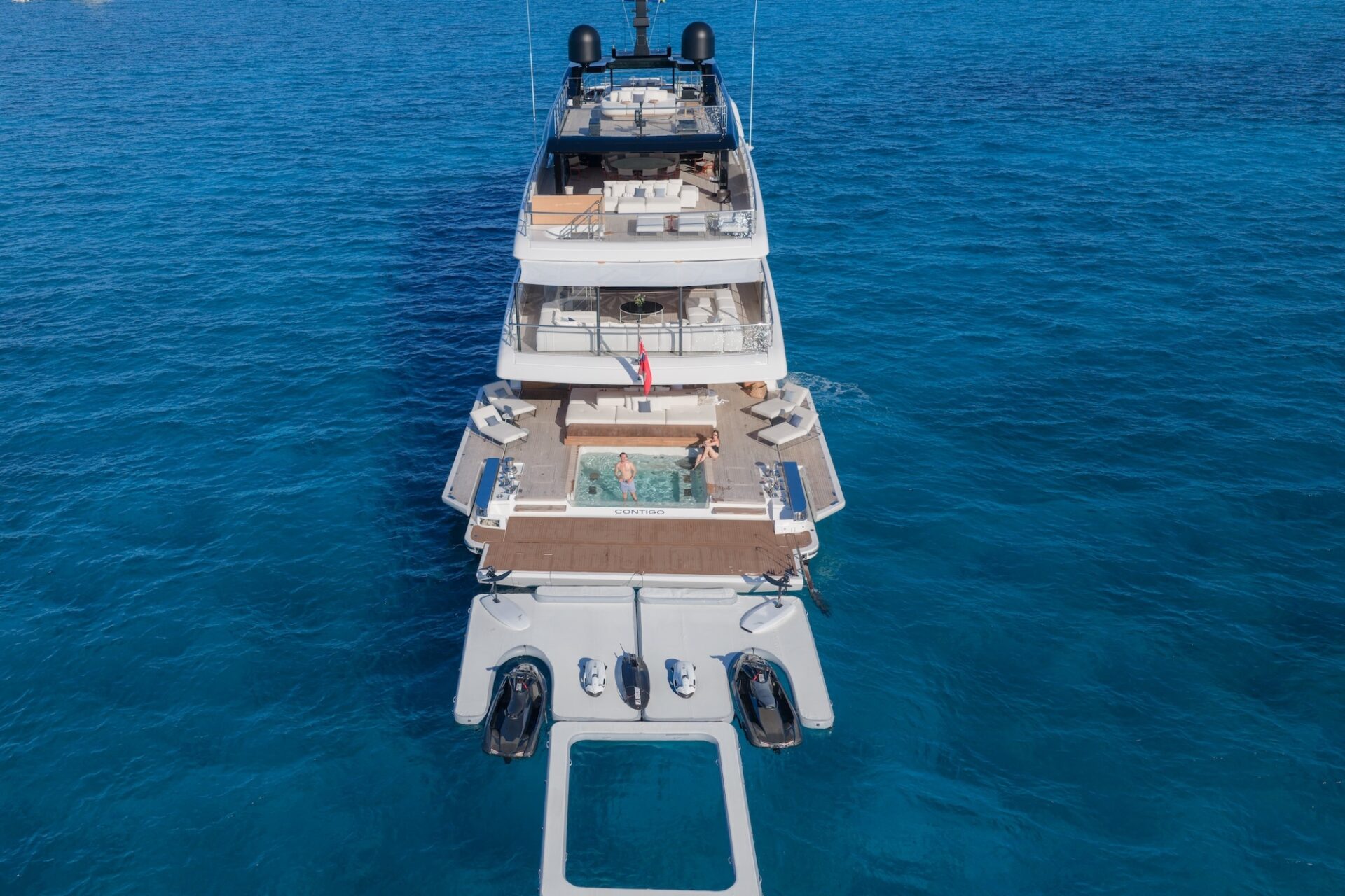 Meticulously serviced by a crew of 11, CONTIGO sets a new benchmark in eco-conscious chartering. Powered by Sustainable Siemens Energy Technology and the world’s first green methanol fuel cell system on a yacht of this class, she offers quiet, low-impact cruising without compromising style or comfort. Effortlessly stylish, beautifully designed and pioneering in sustainability, CONTIGO delivers a uniquely modern charter experience, one where indulgence, innovation and Italian design excellence come together in perfect harmony.