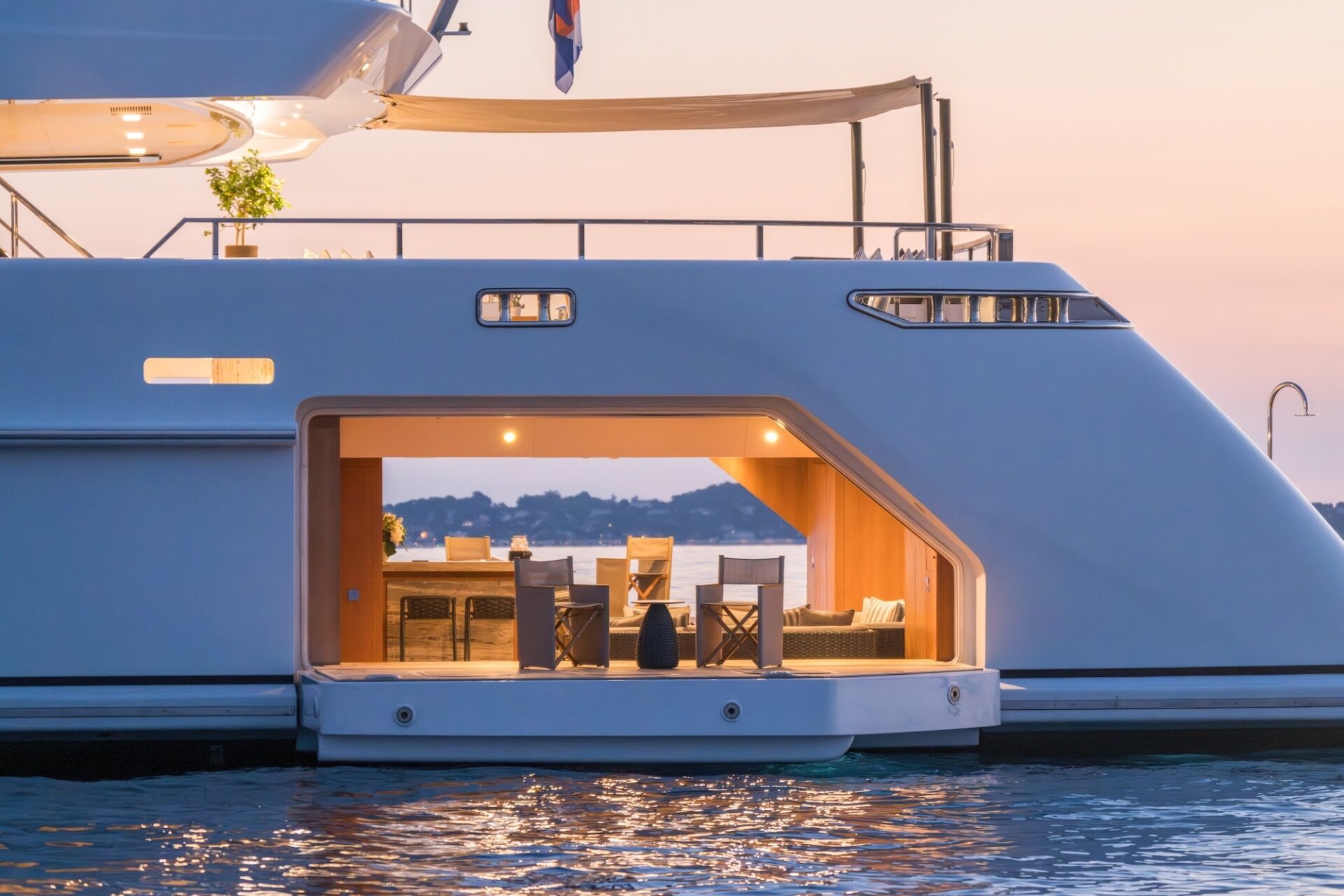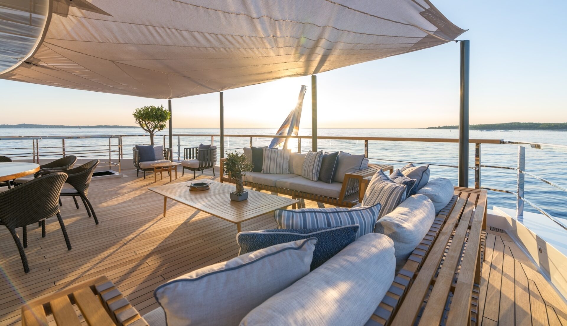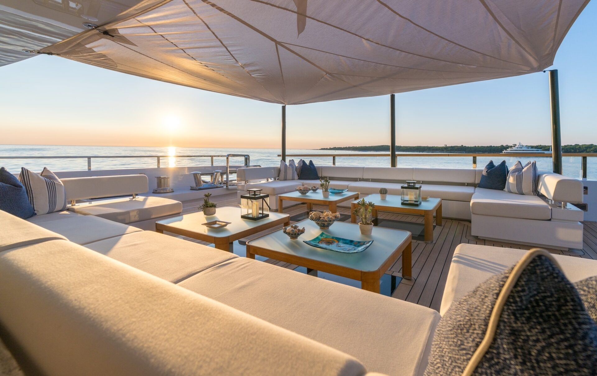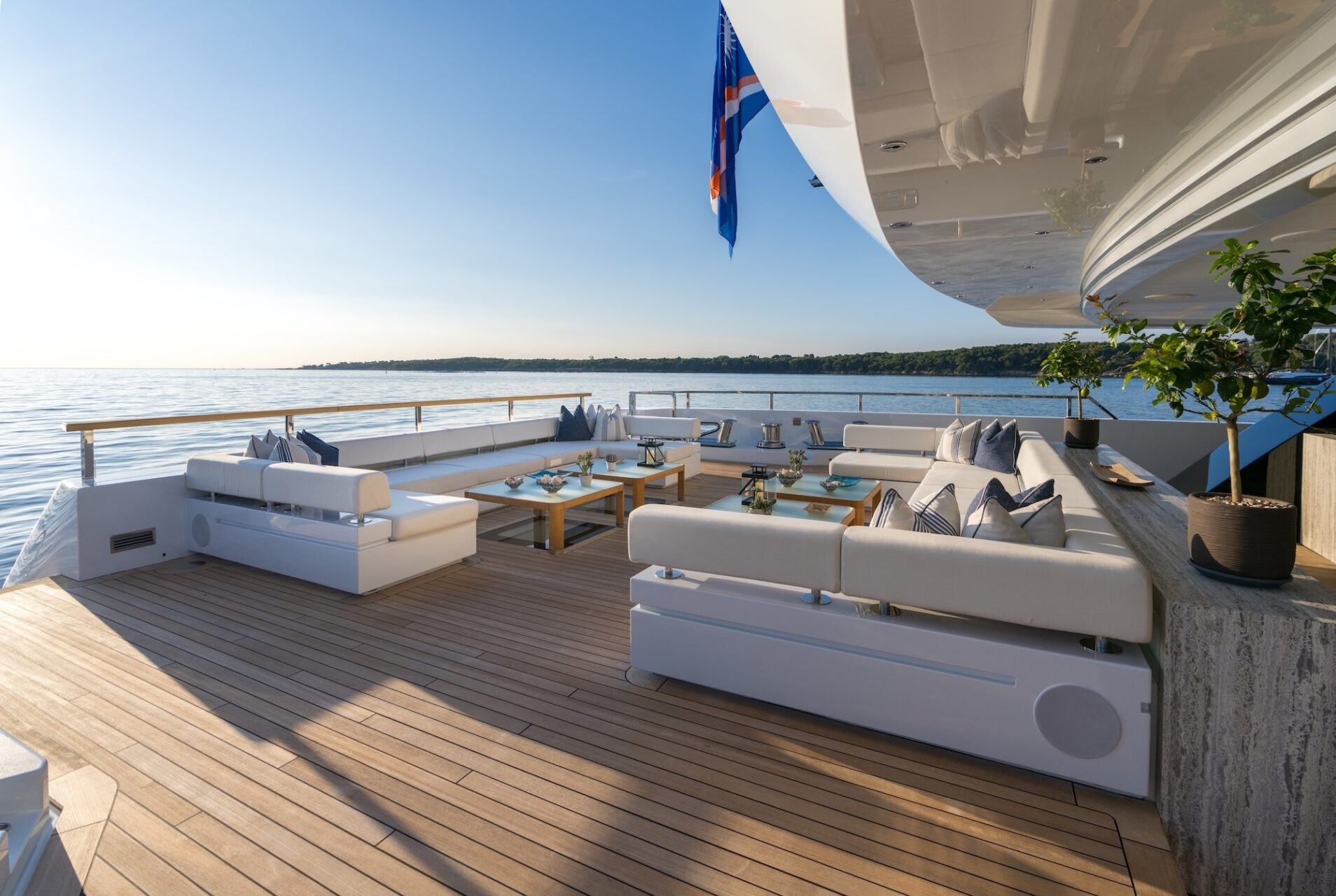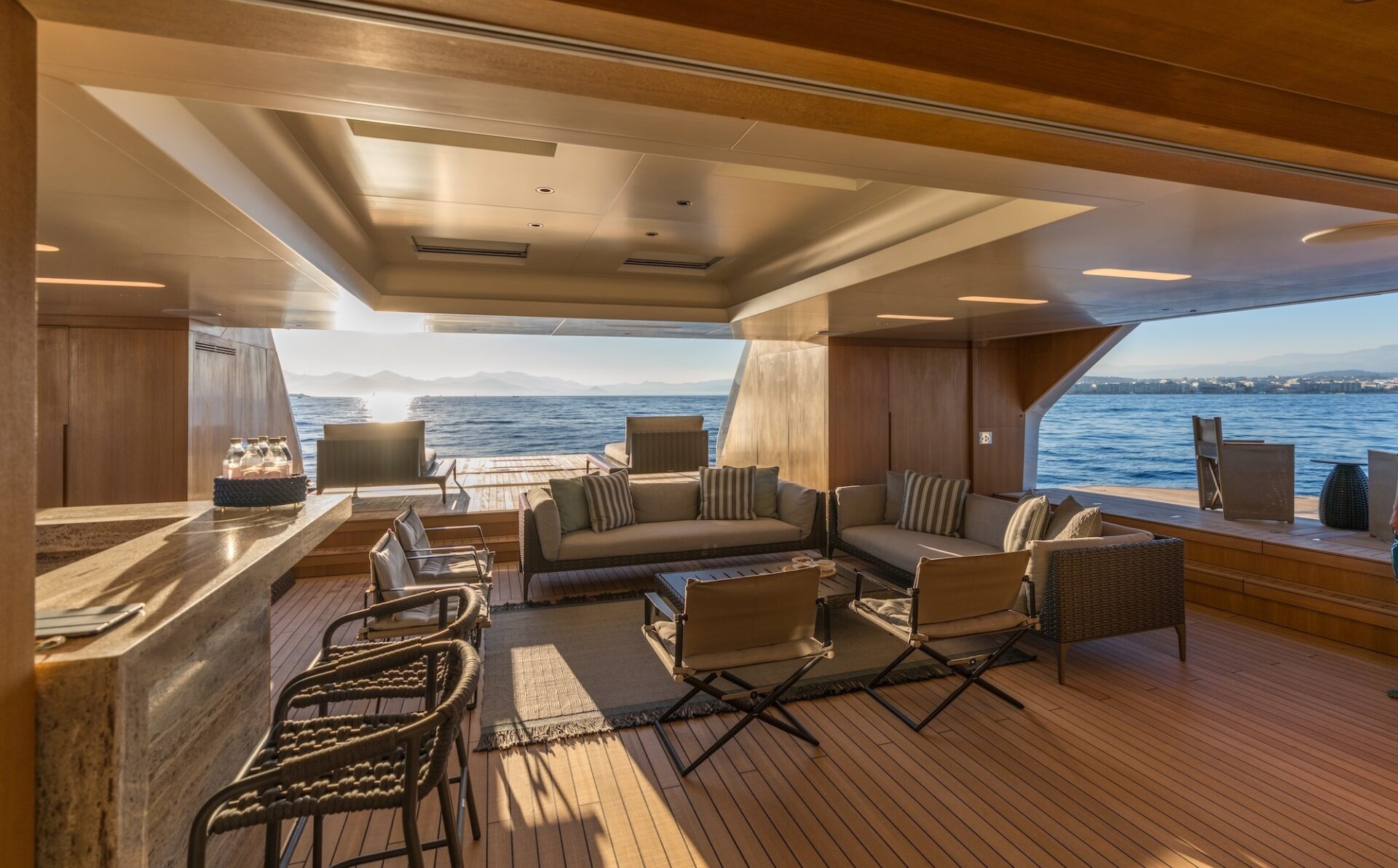 Outdoor living is a defining feature. An expansive beach club features fold-down platforms, which create a vast waterside lounge with direct spa and gym access, while the foredeck incorporates a secluded relaxation area. The bridge deck offers a substantial jacuzzi, al fresco dining and generous open-air lounging, with flexible configuration options.