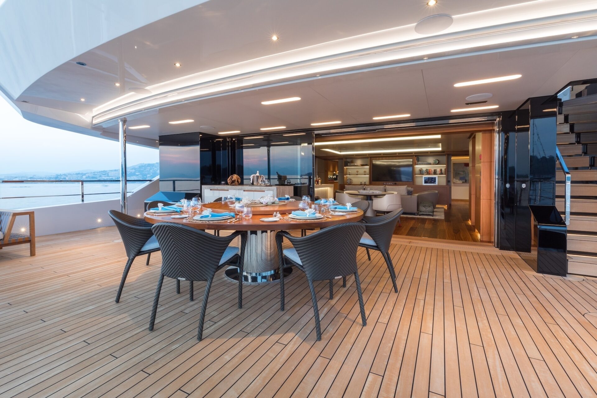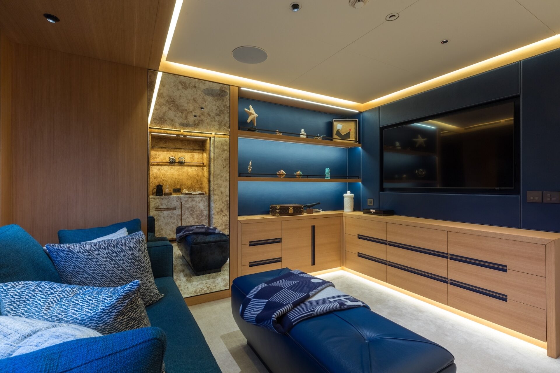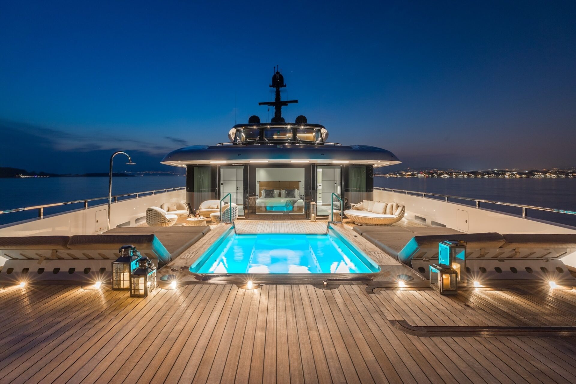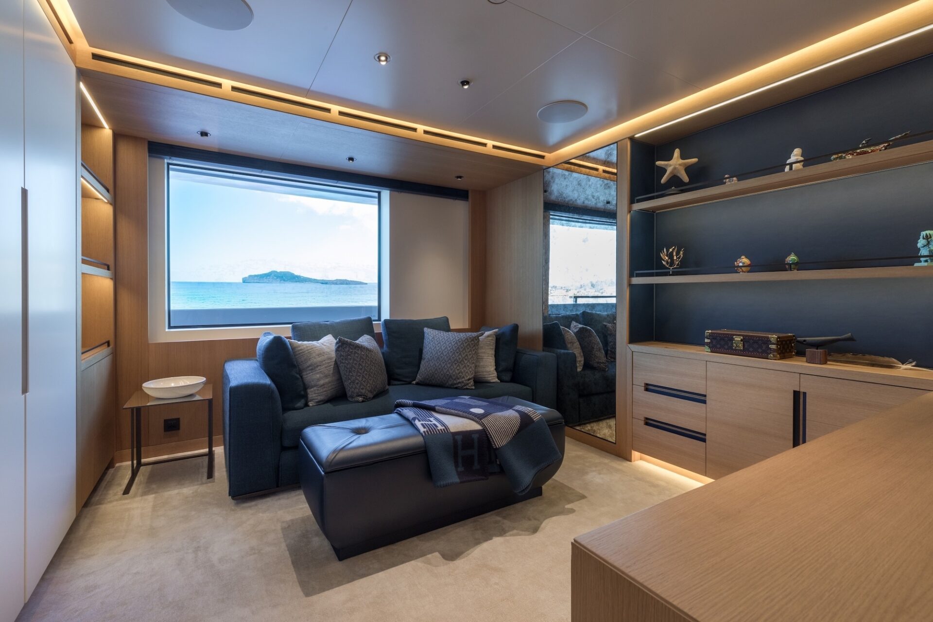 Accommodation is for 12 guests in 6 suites, including a full owners deck, with dedicated study and private exterior access. The main deck has two VIP suites and three further guest cabins, providing excellent flexibility for family, whilst the lower deck hosts a professional wellness centre with gym and hammam. Crew quarters accommodate a team of up to 16, ensuring seamless and discreet service delivery.